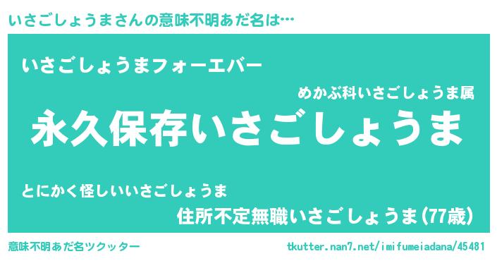 | ヒーロー風カッコイイあだ名 | 『ネオイサゴショウマ』『仮面イサダー』 |