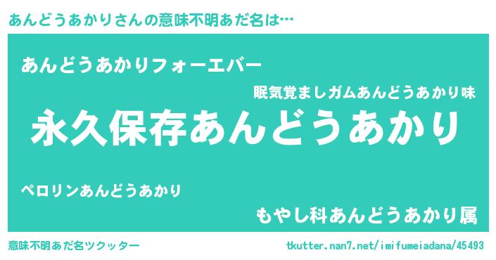 | 胡散臭い通販商品みたいなあだ名 | 『絶対に幸福をもたらす健康食品…その名も「あんどうあかり」』 |