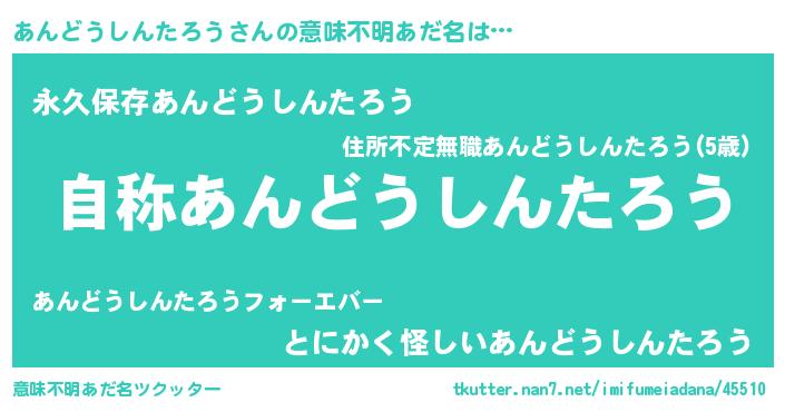 | 女子向けラノベタイトル風あだ名 | 『あんどうしんたろうアンティーク』 |