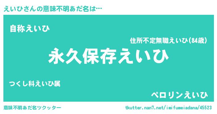 | 胡散臭い通販商品みたいなあだ名 | 『絶対に幸福をもたらす健康食品…その名も「えいひ」』 |