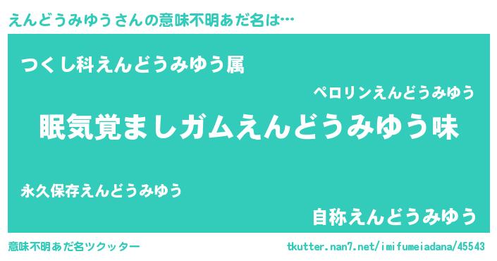 | 男性向けラノベタイトル風あだ名 | 『ノーゲーム・ノーエンドウミユウ』 |
