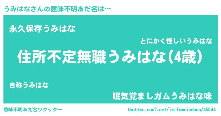 | ヒーロー風カッコイイあだ名 | 『仮面ウミダー』『ネオウミハナ』 |