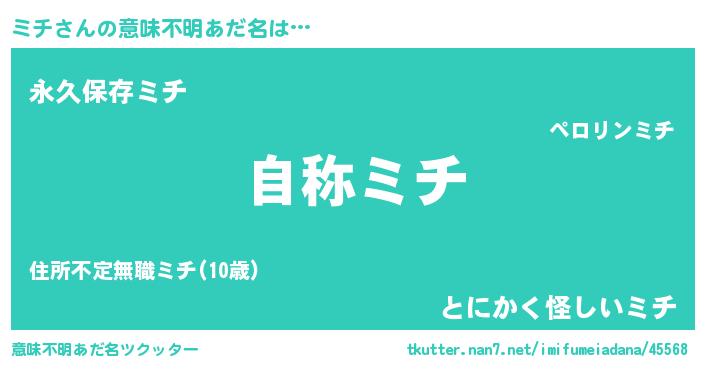 | 男性向けラノベタイトル風あだ名 | 『ミチに滅ぼされるだけの簡単なお仕事です』 |