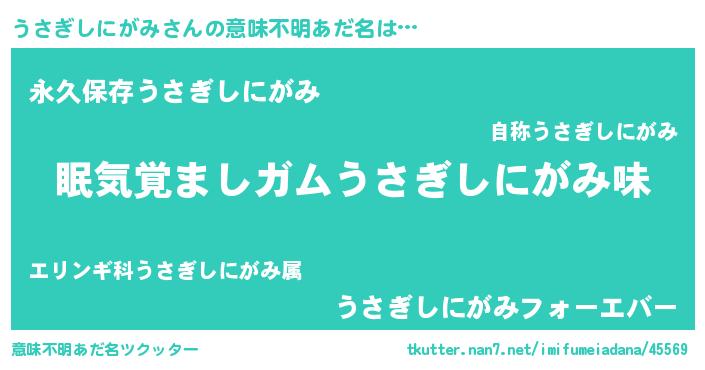 | ヘコむあだ名 | 『うさぎしにがみ(遠い目)』『つくし』 |