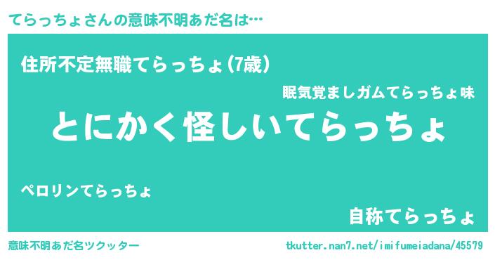 | 胡散臭い通販商品みたいなあだ名 | 『信頼と実績のサプリメント…その名も「てらっちょ」』 |