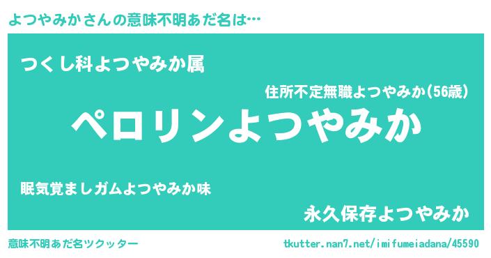 | 恥ずかしいあだ名 | 『プリティーよつやみか』『よつちん』 |
