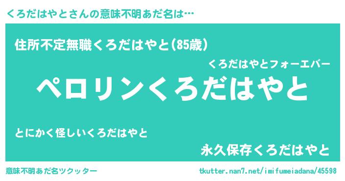 | 胡散臭い通販商品みたいなあだ名 | 『モテモテ間違いなし霊験あらたかなお札…その名も「くろだはやと」』 |
