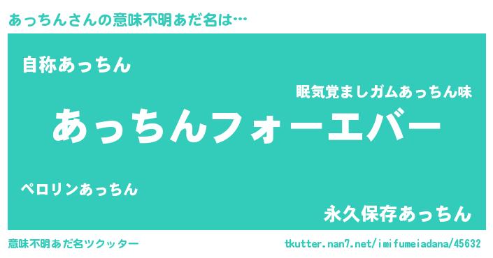 | ヒーロー風カッコイイあだ名 | 『ウルトラあっちんマン』『ネオアッチン』 |