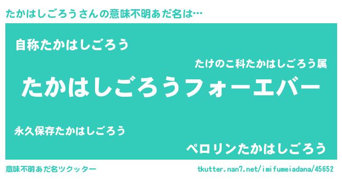 | 男性向けラノベタイトル風あだ名 | 『やはりたかはしごろうの青春ラブコメはまちがっている 』 |