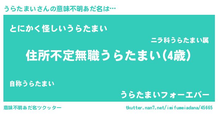 | 男性向けラノベタイトル風あだ名 | 『魔弾の王とうらたまい』 |