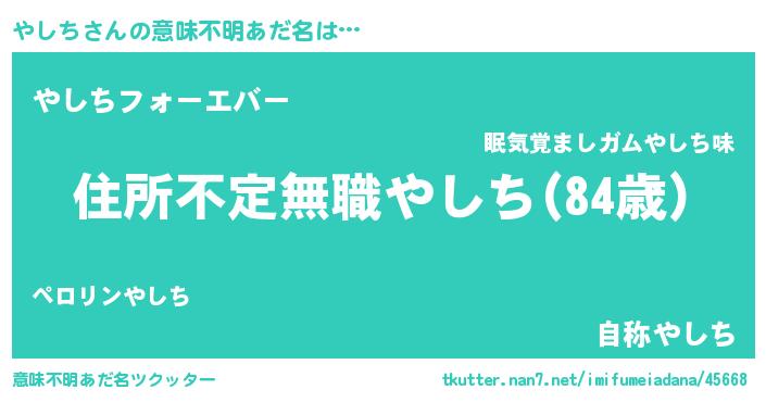 | ヒーロー風カッコイイあだ名 | 『仮面ヤシダー』『ウルトラやしちマン』 |