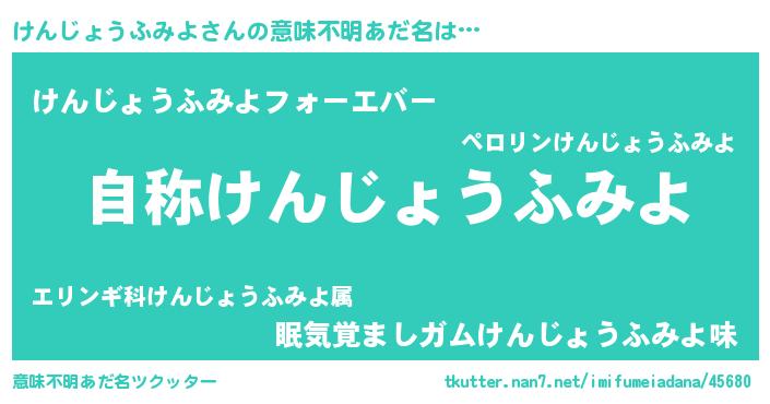 | ヒーロー風カッコイイあだ名 | 『最強戦士ケンジョウフミヨ』 |