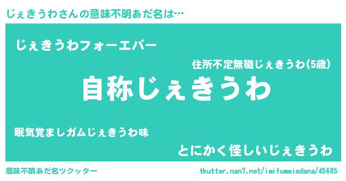 | 男性向けラノベタイトル風あだ名 | 『Re:じぇきうわから始める異世界生活』 |