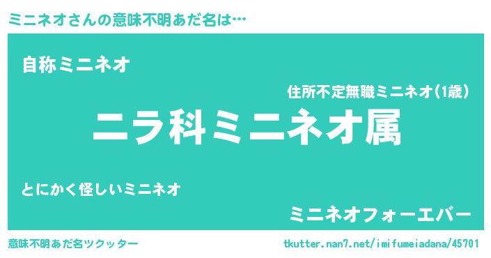 | 欧米人風あだ名 | 『トリンドルミニネオ』 |