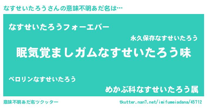 | ヒーロー風カッコイイあだ名 | 『友情の使者なすせいたろう』 |