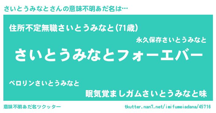 | 欧米人風あだ名 | 『さいとうみなとクリステル』 |