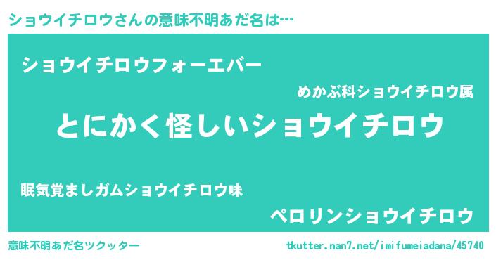 | 男性向けラノベタイトル風あだ名 | 『ショウイチロウの嫁は女の子じゃないと思った?』 |