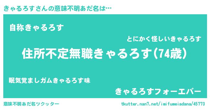 | 男性向けラノベタイトル風あだ名 | 『魔弾の王ときゃるろす』 |