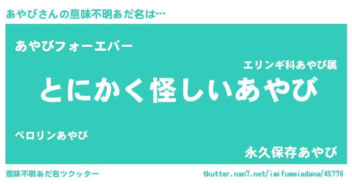 | ポケモン風あだ名 | 『アヤゴンZ』『ヒアヤビ』『ゼニアヤ』 |