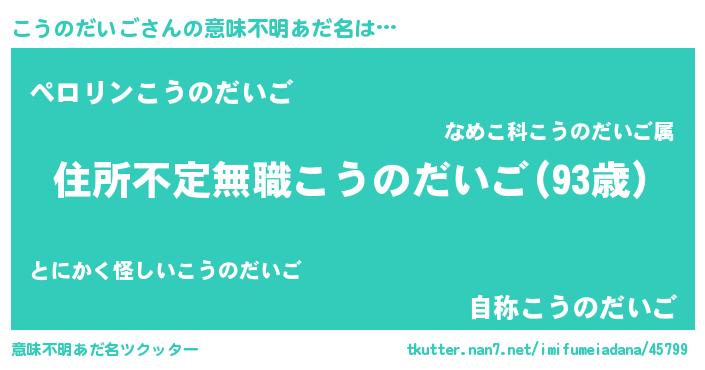 | 男性向けラノベタイトル風あだ名 | 『うちのこうのだいごが世界を掌握している!』 |
