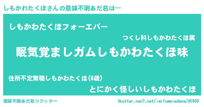 | ヒーロー風カッコイイあだ名 | 『慈愛の使者しもかわたくほ』 |
