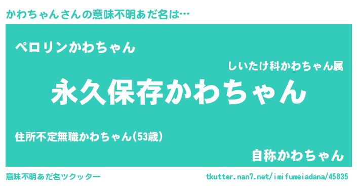 | 伝説のあだ名 | 『古文書に記された勇者かわちゃん』 |