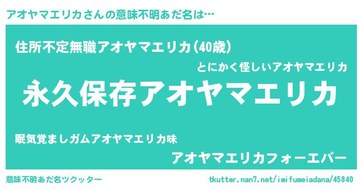 | 男性向けラノベタイトル風あだ名 | 『アオヤマエリカという概念が存在しない退屈な世界 』 |
