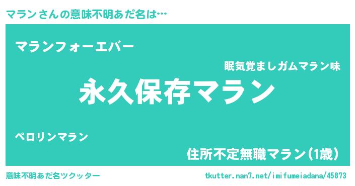 | 男性向けラノベタイトル風あだ名 | 『マランという概念が存在しない退屈な世界 』 |