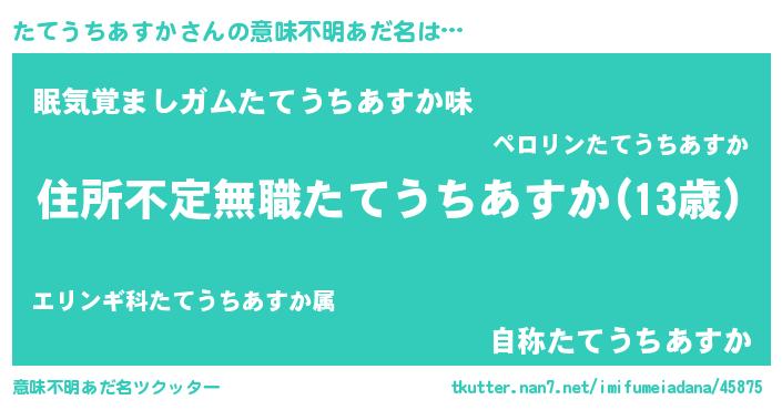 | ヘコむあだ名 | 『たてふぇ~』『たてうちあすか(震え声)』 |