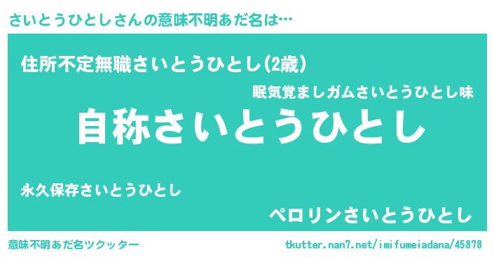 | ヘコむあだ名 | 『さいにゅー』『さいとうひとし(苦笑)』 |