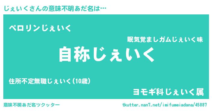 | 欧米人風あだ名 | 『じぇいく・ステッグマイヤー』 |