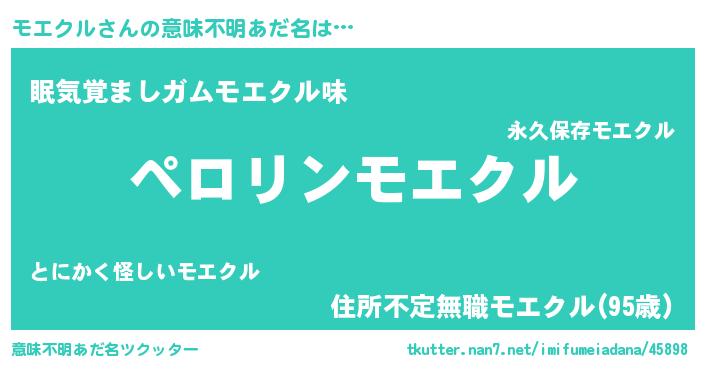 男性向けラノベタイトル風あだ名 | 『モエクルの憂鬱』『魔弾の王とモエクル』 |