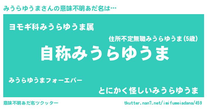 | 男性向けラノベタイトル風あだ名 | 『魔法科高校のみうらゆうま』 |