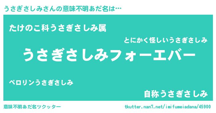 | ファンタジー風あだ名 | 『エターナルウサギサシミー』 |