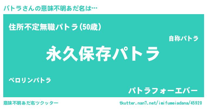 | 伝説のあだ名 | 『古文書に記された勇者パトラ』 |