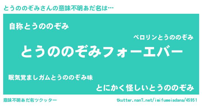 | ファンタジー風あだ名 | 『エターナルトウノノゾミー』 |