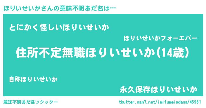 | ヘコむあだ名 | 『ほり太郎』『ほりいせいか(笑)』 |