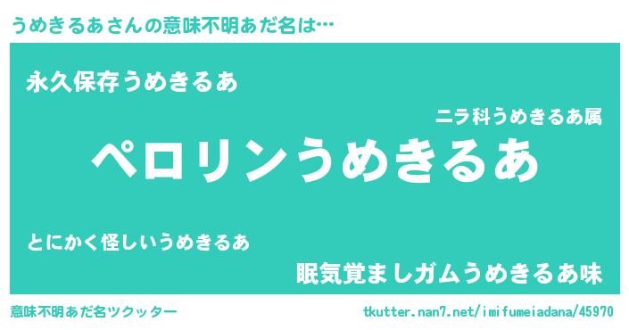 | 胡散臭い通販商品みたいなあだ名 | 『必ず成功するブレスレット…その名も「うめきるあ」』 |