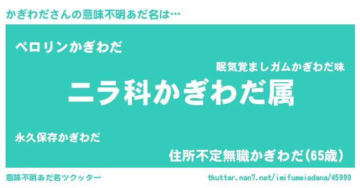 | 男性向けラノベタイトル風あだ名 | 『かぎわだ~年齢イコール彼女いない歴の魔法使い~』 |