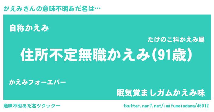 | 男性向けラノベタイトル風あだ名 | 『緋弾のカエミ』『はたらくかえみさま!』 |