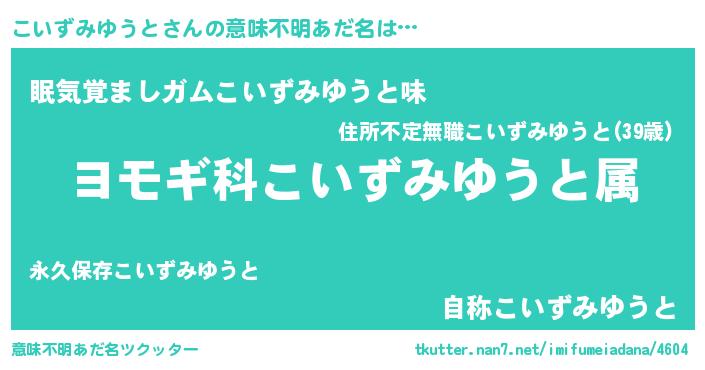 | ヘコむあだ名 | 『こいずみゆうと(笑)』『こいぷりん』 |