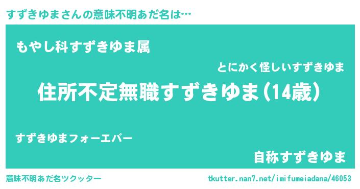 | 女子向けラノベタイトル風あだ名 | 『悪役すずきゆまに転生したようですが、知った事ではありません』 |