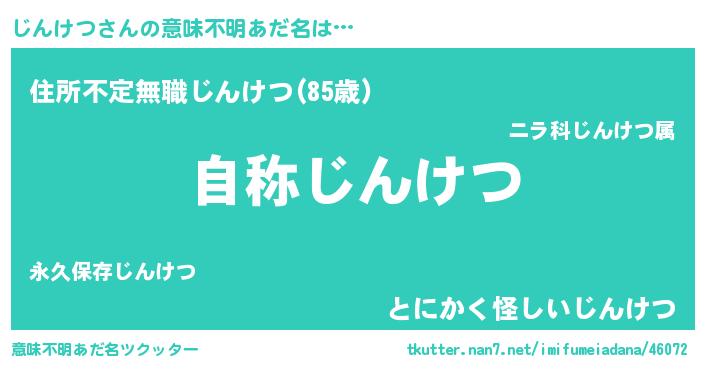 | 女子向けラノベタイトル風あだ名 | 『じんけつなんてお断りですっ。』 |