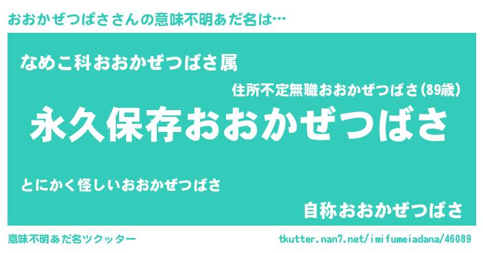 | 胡散臭い通販商品みたいなあだ名 | 『来世でも幸せになれる水素水…その名も「おおかぜつばさ」』 |