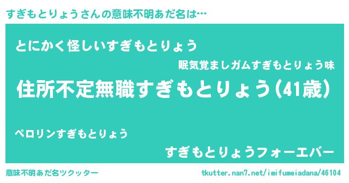 | 料理風あだ名 | 『すぎもとりょうのカルパッチョ風』 |