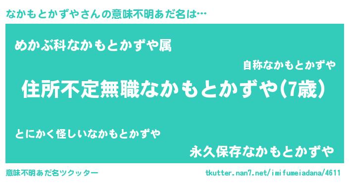 | 男性向けラノベタイトル風あだ名 | 『この素晴らしい世界になかもとかずやを!』 |