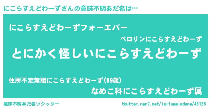 | 欧米人風あだ名 | 『アンジェラ・にこらすえどわーず』 |