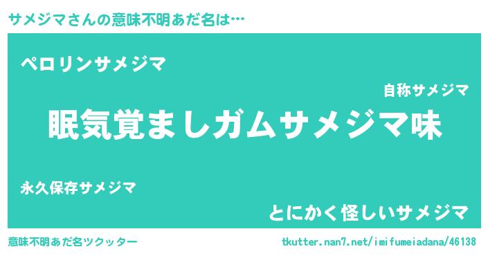 | 男性向けラノベタイトル風あだ名 | 『ノーゲーム・ノーサメジマ』 |