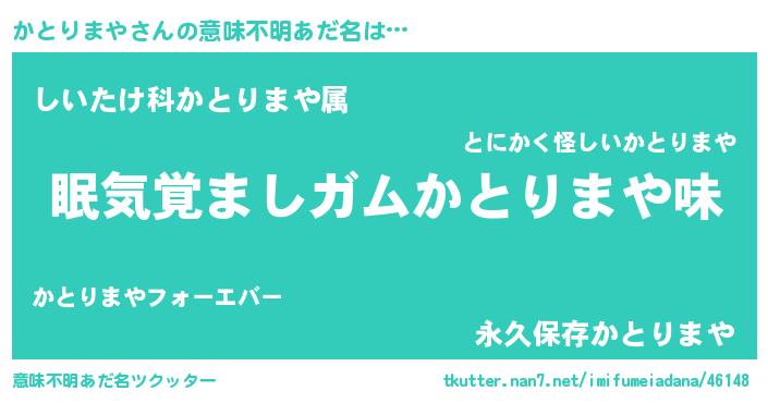 | ヘコむあだ名 | 『かとりまや(爆)』『かとぷりん』 |