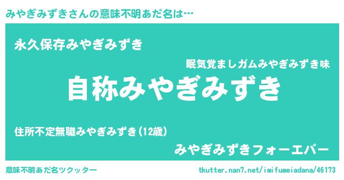 | 恥ずかしいあだ名 | 『ミヤギミズキデラックス』『みやちん』 |